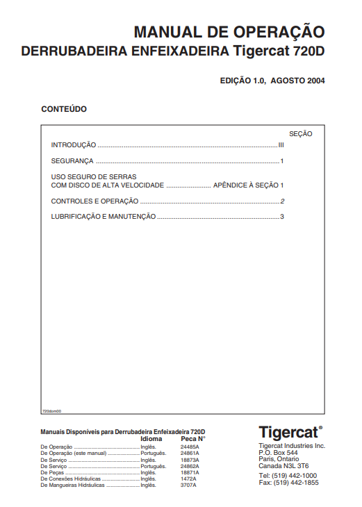 Tigercat 720D Feller Buncher service repair manual showcasing the equipment and essential repair informationTigercat 720D Feller Buncher Operator’s Manual (Portuguese)