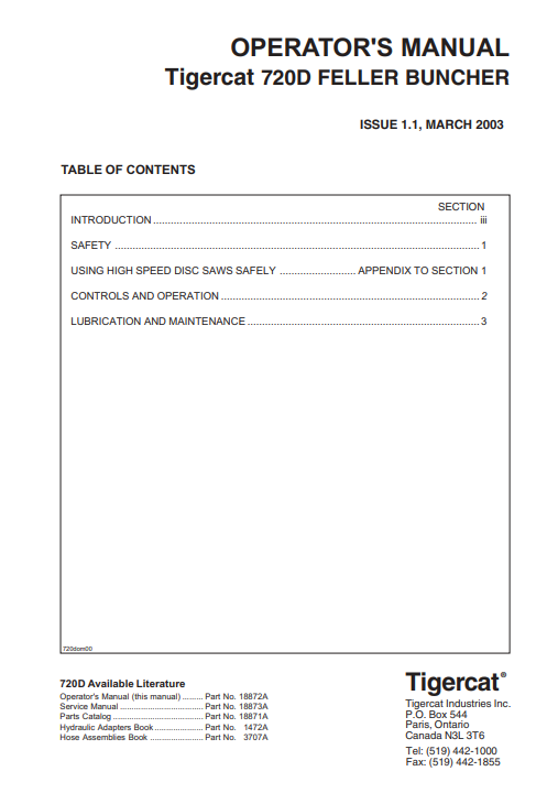 Tigercat 720D Feller Buncher Operator’s Manual