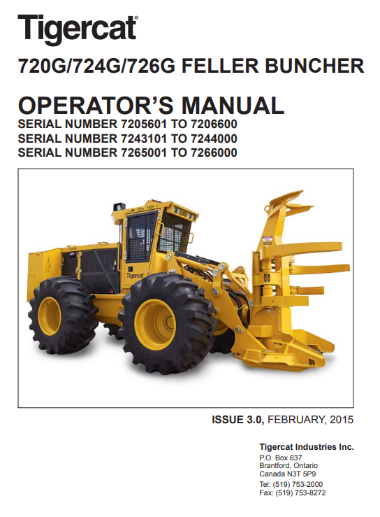 Tigercat 720G, 724G, 726G Feller Buncher Operator’s Manual