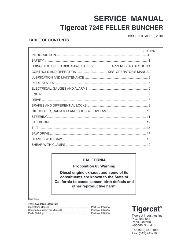 | Package include | Tigercat 724E Feller Buncher Service Repair Manual |