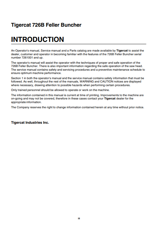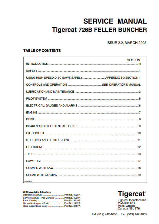 Tigercat 726B Feller Buncher Service Repair Manual