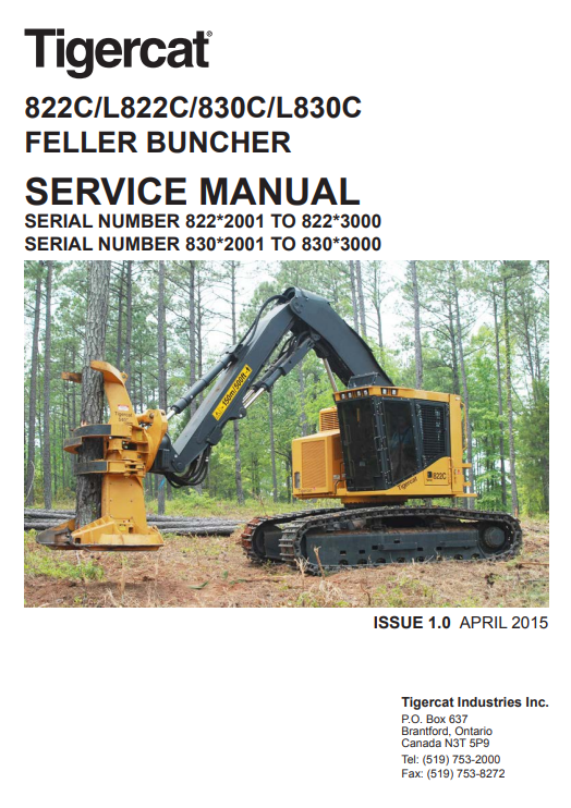Service repair manual cover for Tigercat 822C, L822C, 830C, and L830C feller bunchersTigercat 822C, Tigercat L822C, Tigercat 830C, Tigercat L830C Feller Bunchers Service Repair Manual