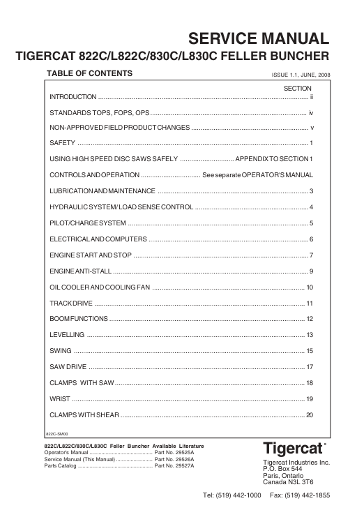 | Package include | Tigercat 822C Feller Buncher Service Repair Manual |
