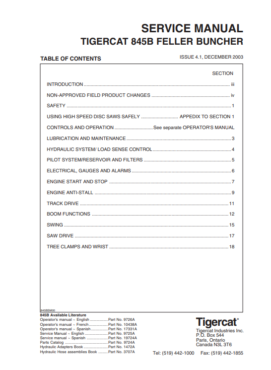 The Tigercat 845B Feller Buncher Service Repair Manual is an essential resource for maintaining and repairing your equipment efficiently. This comprehensive guide provides detailed instructions, diagrams, and troubleshooting tips to ensure optimal performance and longevity of your feller buncher. With clear, step-by-step procedures, you can confidently tackle repairs and maintenance tasks, minimizing downtime and maximizing productivity. Invest in this manual to enhance your operational efficiency and keep your Tigercat 845B running smoothly