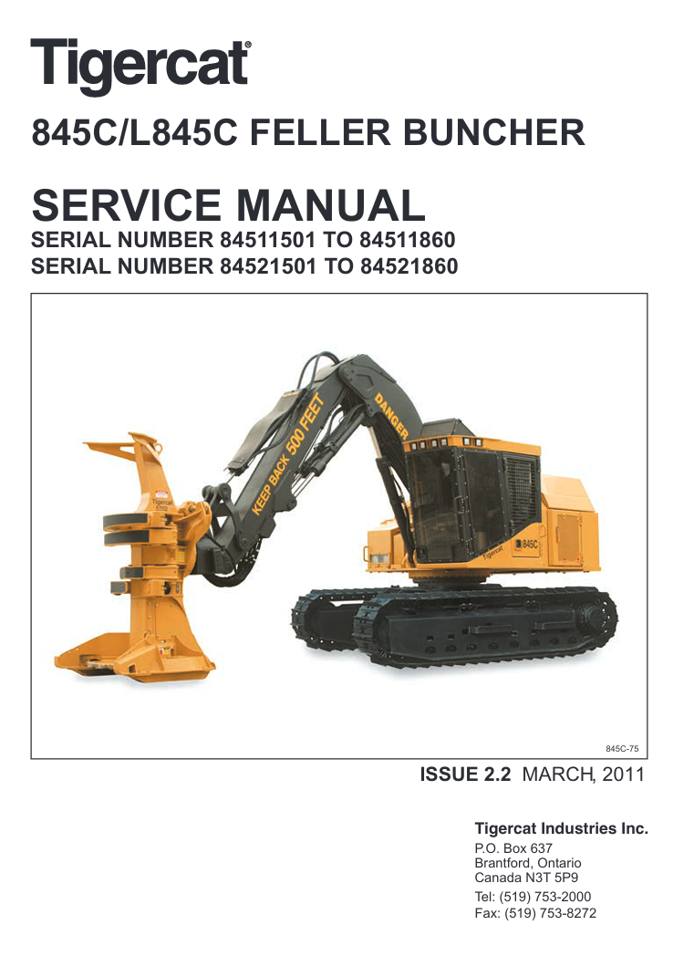 Service repair manual for the Tigercat 845C Feller Buncher, detailing maintenance and troubleshooting proceduresTigercat 845C Feller Buncher Service Repair Manual