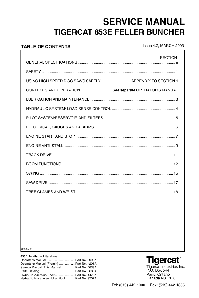 Package include Tigercat 853E Feller Buncher Service Repair Manual