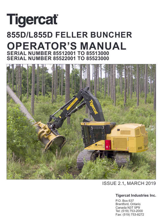 | Package include | Tigercat 855D Feller Buncher Operator’s Manual |