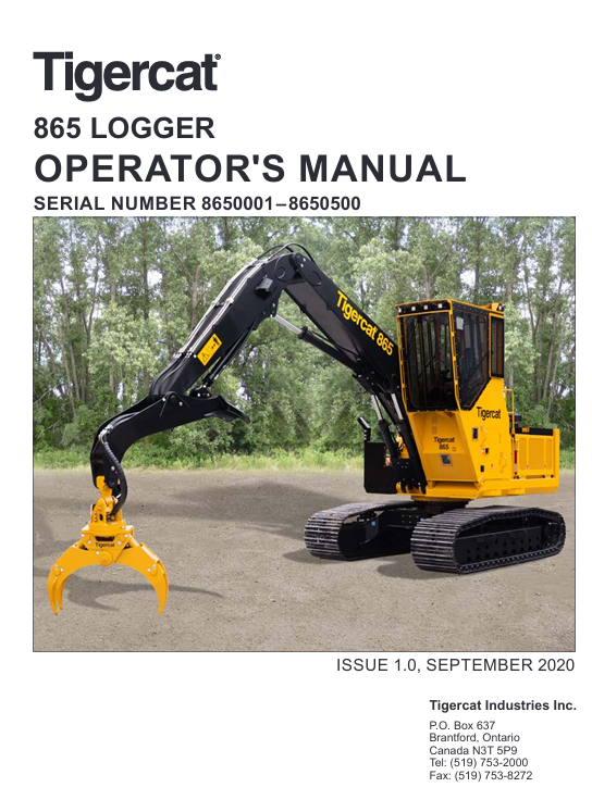 | Package include | Tigercat 865 Logger Operator’s Manual |