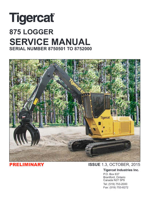 | Package include | Tigercat 875 Logger Service Repair Manual |