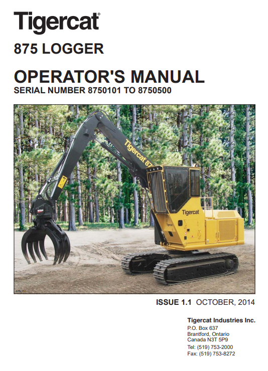 Tigercat 875 Logger Operator’s Manual
