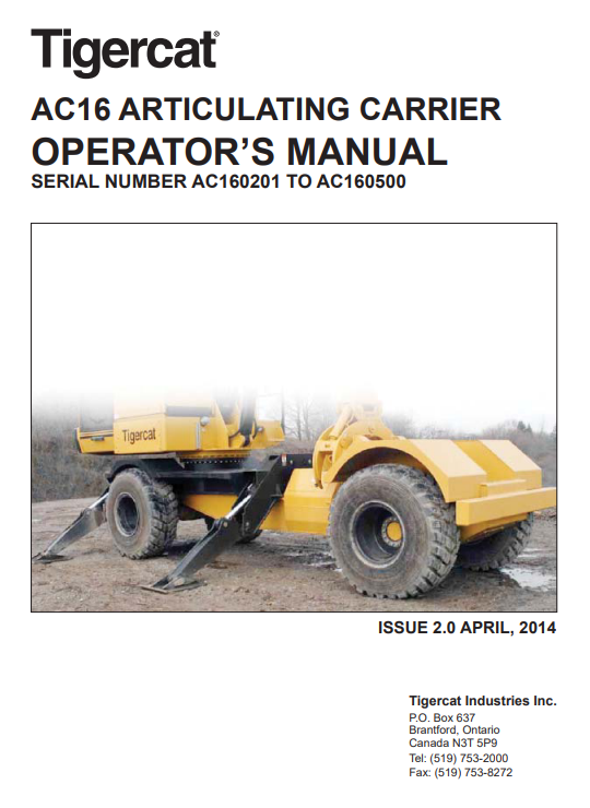 Tigercat AC16 Articulating Carrier Operator’s Manual