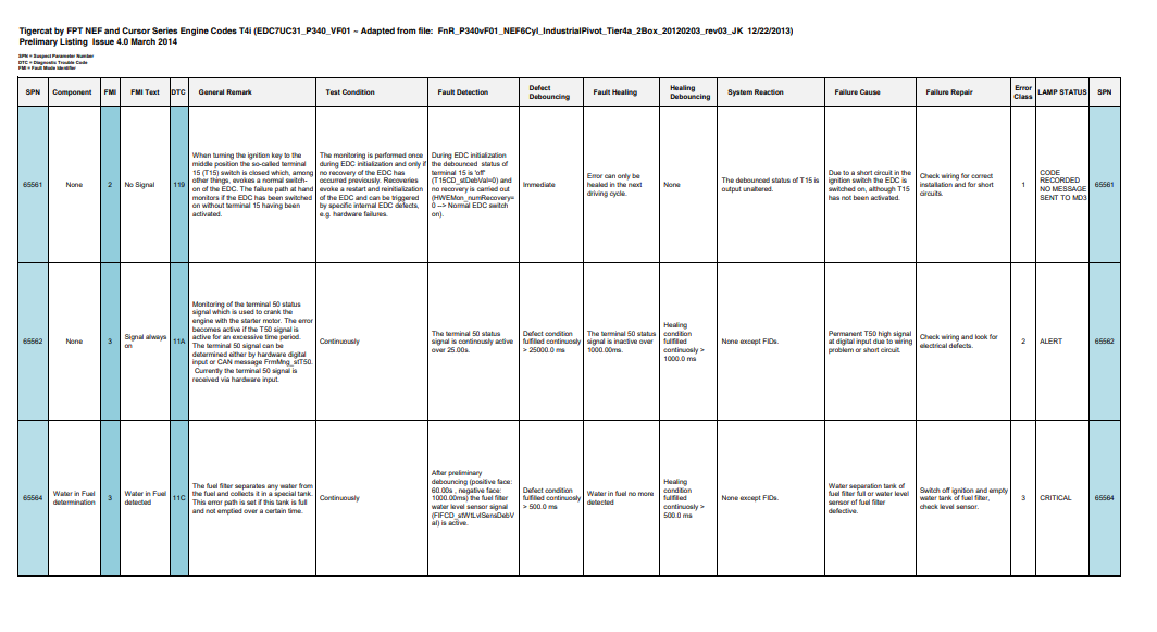 Tigercat by FPT NEF and Cursor Series Engine Codes Explanation T4