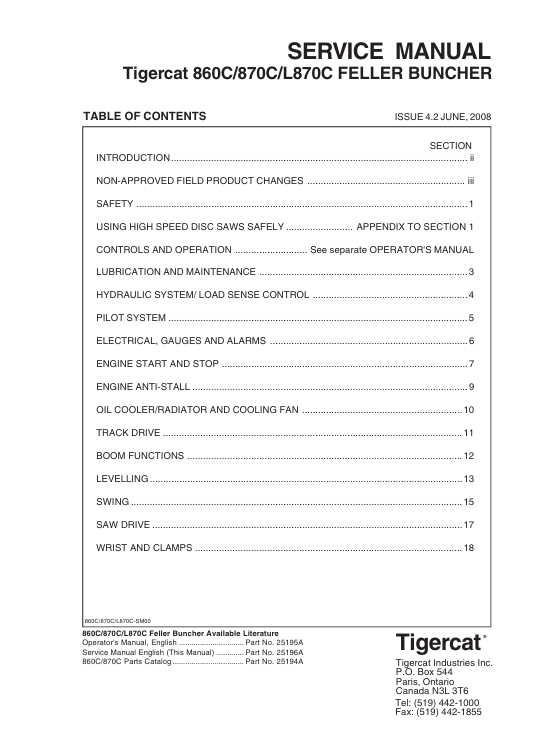 | Package include | Tigercat L870C Feller Buncher Service Repair Manual |