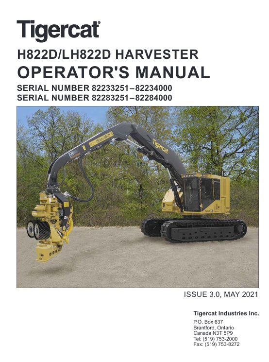 | Package include | Tigercat LH822D Harvester Operator’s Manual |