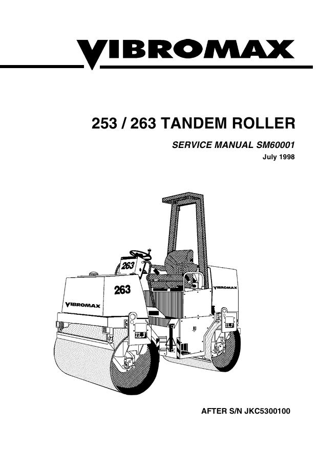 With this original factory Service manual, the technician can detect and solve any problems encountered when repairing your Vbromax 263 and This workshop repair manual for the Vbromax 263 Roller provides detailed instructions and technical information for maintenance and repair tasks to keep your equipment in top condition.