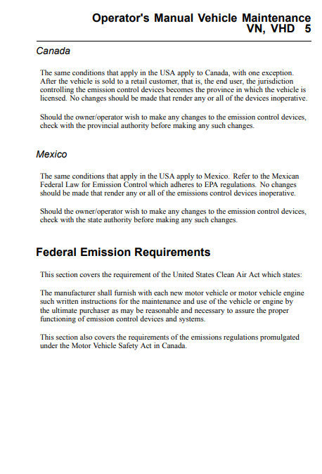 Operator’s Manual Vehicle Maintenance VN, VHD