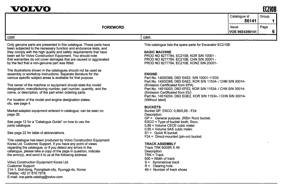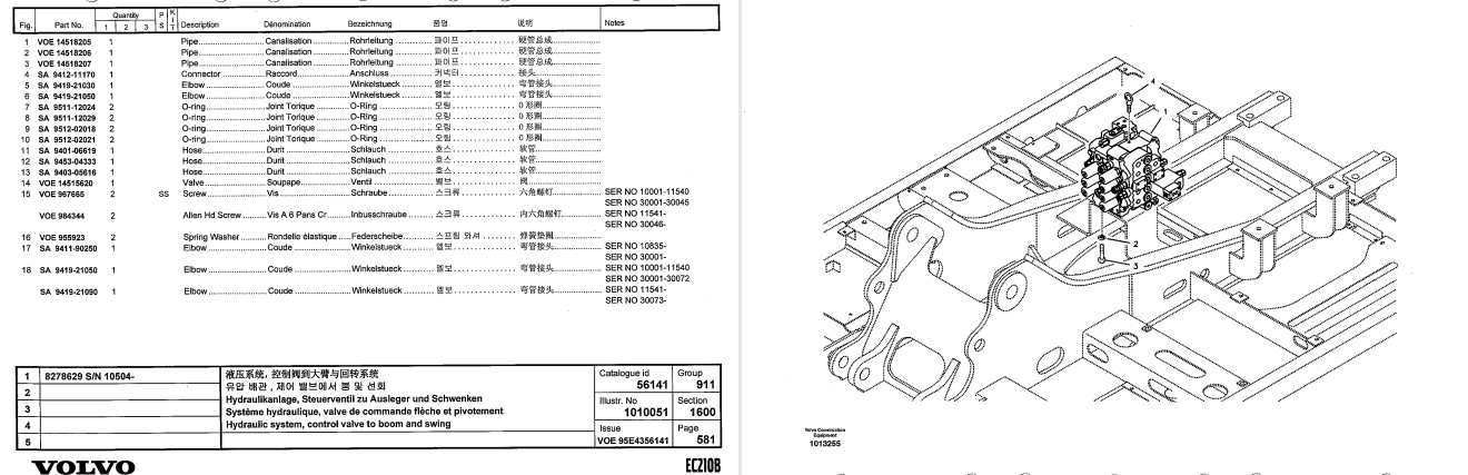 Volvo EC210B Excavator Parts Catalog