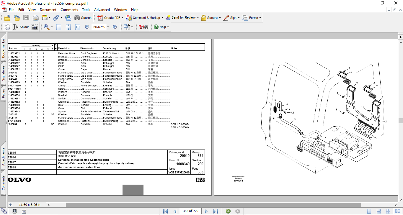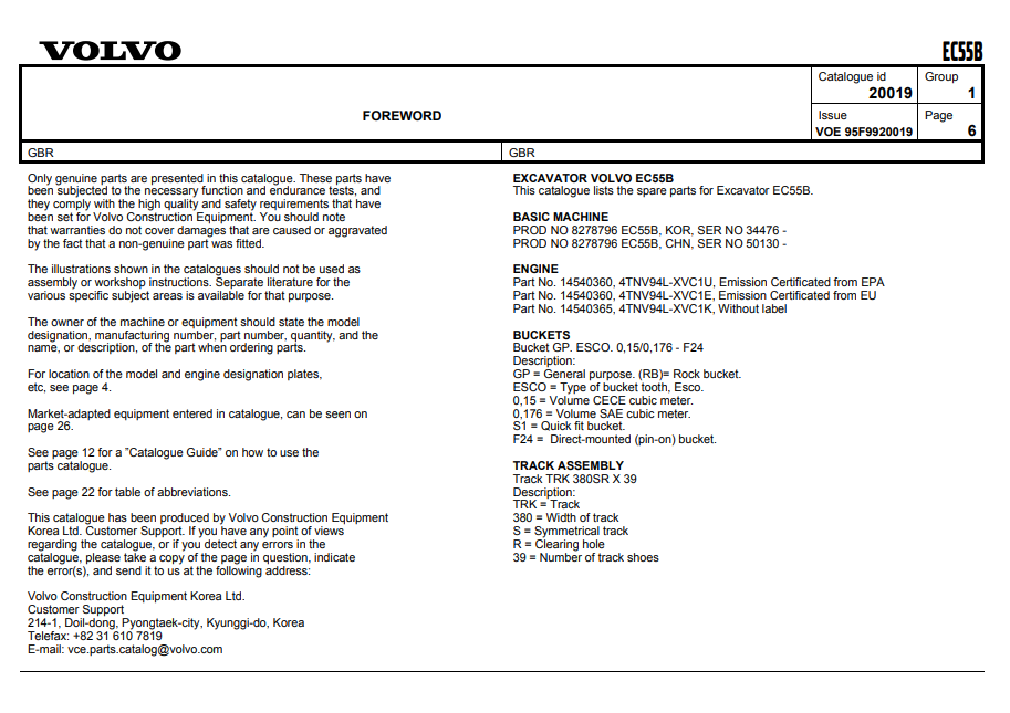 Comprehensive parts catalog for the Volvo EC55B excavator, featuring diagrams and descriptions of essential componentsVolvo EC55B Excavator Parts Catalog
