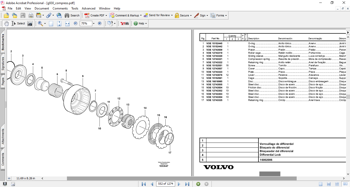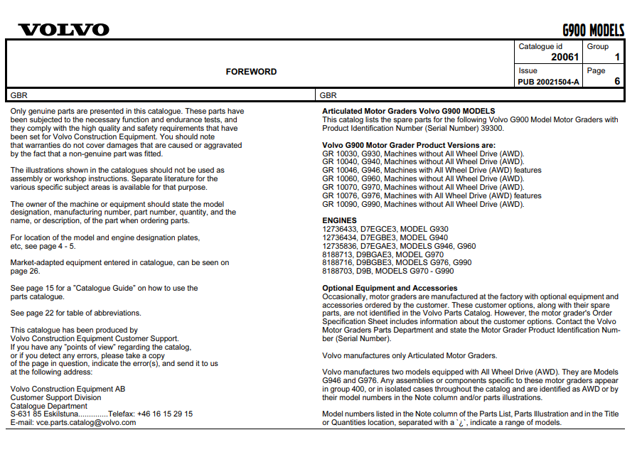Volvo G900 Series Motor Grader Parts Catalog