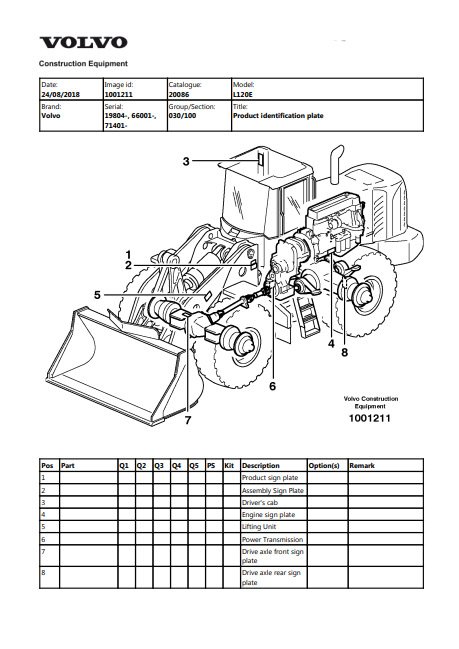 Volvo L120E Wheel Loader Parts Catalog