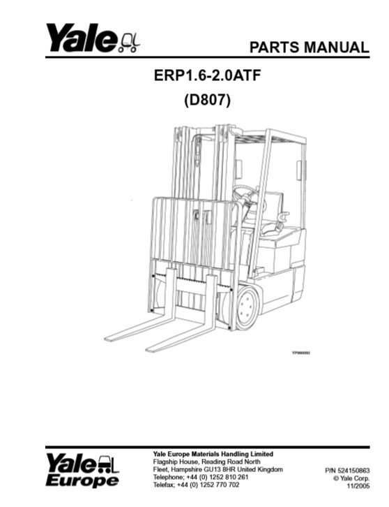 Yale ERP1.6-2.0ATF (D807) Forklift Parts Manual