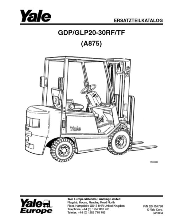 Free PDF manual for Yale forklift parts, featuring comprehensive information and illustrations for maintenance and repairYale GDP-GLP20-30RF-TF (A875) Forklift Parts Manual