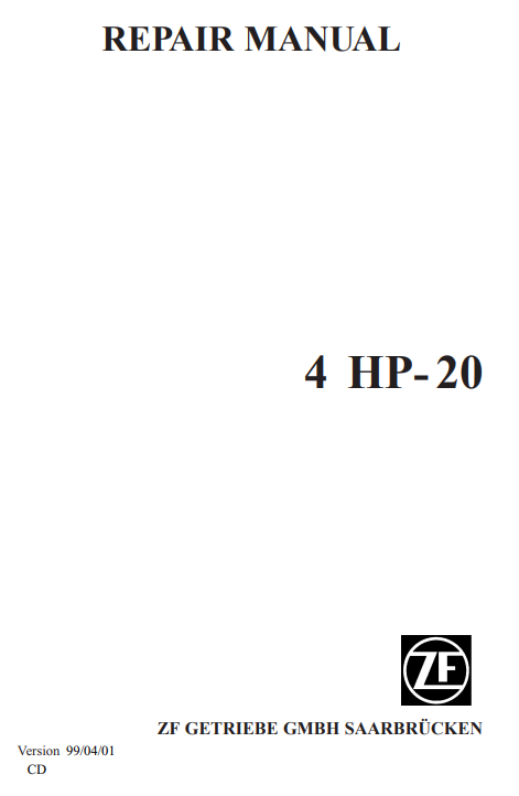 ZF Transmission 4HP20 repair manual cover featuring technical diagrams and detailed instructions for maintenance and repairZF Transmission 4HP20 Repair Manual