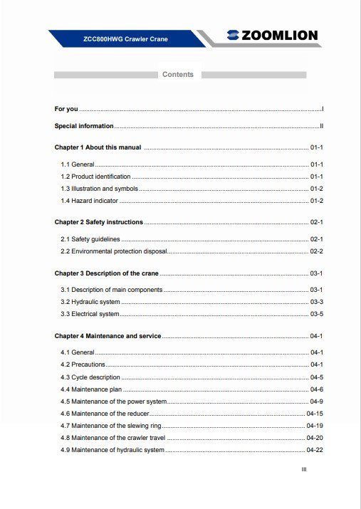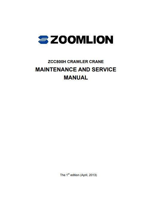 The Zoomlion ZCC800H Crawler Crane Maintenance & Service Manual is an essential resource for operators and technicians, providing comprehensive guidance on the maintenance and servicing of this powerful machine. This manual includes detailed diagrams, troubleshooting tips, and step-by-step procedures to ensure optimal performance and longevity of your crane. With clear instructions and expert insights, you can confidently maintain your equipment, reduce downtime, and enhance safety on the job site. Invest in this manual to keep your Zoomlion ZCC800H running smoothly and efficiently