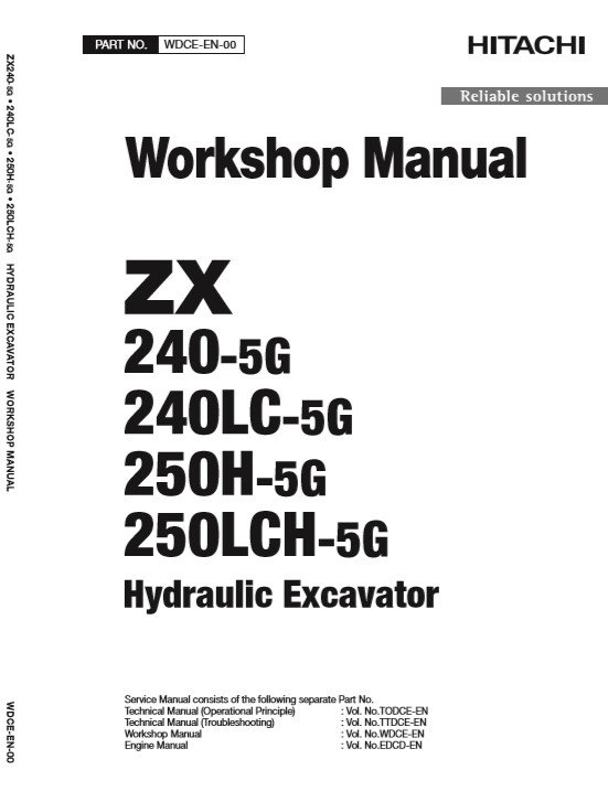 Hitachi ZX240-5G, ZX250-5G Series Workshop Manual and Diagrams