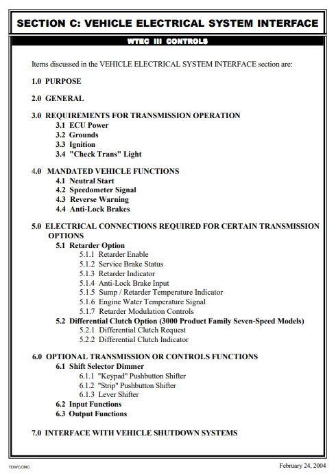 VEHICLE ELECTRICAL SYSTEM INTERFACE-WTEC III CONTROLS
